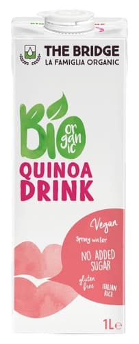 Quinoovo-rýžový nápoj značky The Bridge v BIO kvalitě. Jedná se o rostlinnou alternativu mléčného nápoje, která je vyrobená z merlíku čilského a rýže. Má jemnou konzistenci. Nápoj neobsahuje laktózu ani lepek, je vhodný také pro vegany.