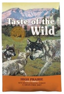 Taste of the Wild High Prairie Puppy je vyvážené krmivo pro dospívající psy a štěňata všech plemen. Složení bez obilnin obsahuje lehce stravitelné sladké brambory, bizona a jehněčí maso. Zdravé trávení a vyváženou střevní mikroflóru zajišťuje přídavek čekanky a juky, které poskytují prebioticky působící inulin.