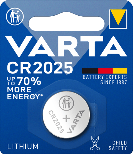 Prémiová lithiová baterie CR2025 Varta je ideální pro spolehlivé napájení malých elektronických zařízení. Nabízí vysoký výkon při pulzním i kontinuálním vybíjení, díky čemuž je vhodná i pro náročnější spotřebiče. Baterie je balena v bezpečnostním obalu s dětskou pojistkou a splňuje nejvyšší bezpečnostní standardy.