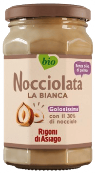Rigoni di Asiago Nocciolata White BIO 250 g is a organic spread made from cocoa and hazelnuts, crafted from carefully selected ingredients. Ingredients: sugar, hazelnut paste 30%, skimmed milk powder, sunflower oil, cocoa butter, emulsifier: soy lecithin, vanilla extract. Nocciolata is an organic hazelnut paste without palm oil that has earned the trust of customers due to its high quality and commitment to sustainability. The brand offers various product variants, including Cacao and hazelnut paste without palm oil, Cacao and hazelnut paste without milk, Bianca hazelnut paste without palm oil, and Crunchy hazelnut paste without palm oil. Nocciolata is a vegan and organic brand that focuses on providing products that are not only delicious but also environmentally friendly. Rigoni di Asiago S. r. l. is an Italian company operating in the food sector, known for producing honey and jams, based in Asiago in the province of Vicenza. The company was founded in 1997 as Rigoni di Asiago Srl, with the majority of shares remaining with the Rigoni family. Rigoni di Asiago produces organic products such as DolceDì (organic sweetener), Fiordifrutta (organic jams), Fruttosa (organic fruit on a spoon), organic honey, and Nocciolata (organic cocoa and hazelnut cream). Rigoni di Asiago has a production plant on the Altopiano dei Sette Comuni in Foza and a logistics center in Albaredo d'Adige near Verona. Rigoni di Asiago has been present in Bulgaria since 1993, where it is engaged in the production of organic fruit, especially strawberries. In 2020, Andrea Rigoni received the Premio Civiltà Veneta award for his commitment to sustainability. Rigoni di Asiago exports its products to the USA and several European countries, including Germany, France, Denmark, Norway, Sweden, the Netherlands, the United Kingdom, and the Czech Republic.