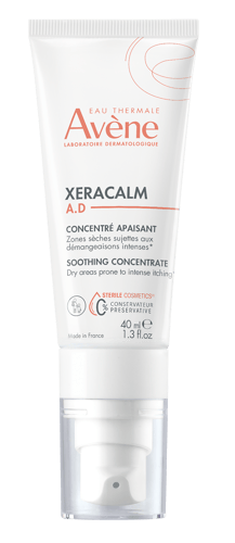 AVENE XeraCalm A.D Zklidňující koncentrovaná péče je speciálně vyvinutý přípravek určený pro suchou, podrážděnou pokožku se sklonem k intenzivnímu svědění a atopickému ekzému. Díky svému složení poskytuje okamžitou úlevu od svědění a zklidňuje citlivou pokožku. Obsahuje postbiotickou aktivní látku I-modulia®, získanou z termální vody Avène, která pomáhá zmírnit podráždění a zarudnutí. Cer-omega, vysoce koncentrovaný ochranný a obnovující komplex, přispívá k regeneraci kožní bariéry a zajišťuje potřebnou výživu a hydrataci. Přípravek je vhodný k použití na obličej, oční víčka i celé tělo. Může být používán u kojenců, dětí i dospělých. Je uznáván dermatology Evropského dermatologického fóra jako Emollient PLUS – tedy doplňková péče pro suchou pleť se sklonem k atopickému ekzému. XeraCalm A.D Zklidňující koncentrovaná péče je balena v hermeticky uzavřeném obalu, který zajišťuje sterilitu a bezpečnost použití. Neobsahuje konzervanty ani parfemaci, je nekomedogenní a minimalizuje riziko vzniku alergických reakcí. Balení obsahuje 40 ml.