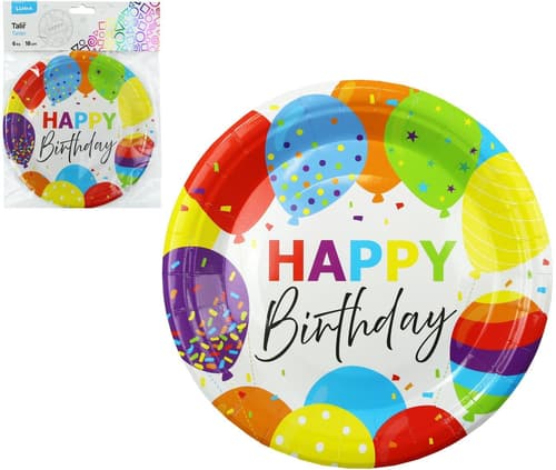 Jednorázové talíře s nápisem Happy Birthday na party s průměrem 18 cm.