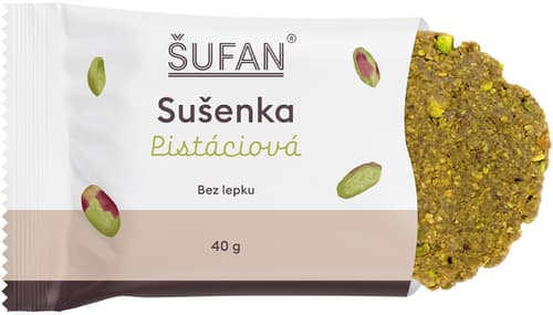 These pistachio cookies are gluten-free and lactose-free, and you only need 4 ingredients to make them. After baking, they are crispy on the outside and soft on the inside. Ingredients: gluten-free oats, chicory root extract, pistachio paste 15%, pistachio kernels 15%, ghee butter, matcha, salt. The cookies contain pistachio butter from Iranian pistachios and finely chopped pistachios for extra crunchiness. Hello, we are Marek, Matěj, and Lukáš. We have been writing the story of Šufan since 2014, when we were inspired by our Canadian travels to start making nut butters. Every product we send to your plate is made by our hands in our production facility in Haná. ŠUFAN PLUS offers wonderful gifts for loyalty. Become part of the Šufan PLUS family and collect points, rewards await you. Stay updated on what's new at ŠUFAN. We will delight you with unique recipes, news from our production, and special events! We collaborate with creative chef Jana Jelič, with whom we create many recipes, breakfast brunches, and pop-ups. Our ingredients are used by cafes and bakeries like Kafe jak Lusk in the center of Olomouc, where our Luky found his wife, CANALL coffee in Prostějov, where you can taste our chai latte with perfectly delicate cheesecake, Ještě Jednu in Brno, where they make ice cream from our carefully roasted nuts, Pastryum bakery in the center of Olomouc, where they fill their delicate pastries with our nut butters, and Kafe Fridrich in Brno, where they offer vegan treats with fillings from our nut creams. We have been writing the story of ŠUFAN s. r. o. since 2014, when we were inspired by our Canadian travels to start making nut butters. Every product we send to your plate is made by our hands in our production facility in Haná. ŠUFAN PLUS - Wonderful gifts for loyalty. Become part of the Šufan PLUS family and collect points, rewards await you. Stay updated on what's new at ŠUFAN. We will delight you with unique recipes, news from our production, and special events! Hello, we are Marek, Matěj, and Lukáš. Our products include nut butters, coconut nests, roasted nuts, granolas, porridges, and artisanal chocolate. We ensure the highest quality and sustainability to bring you only the best.