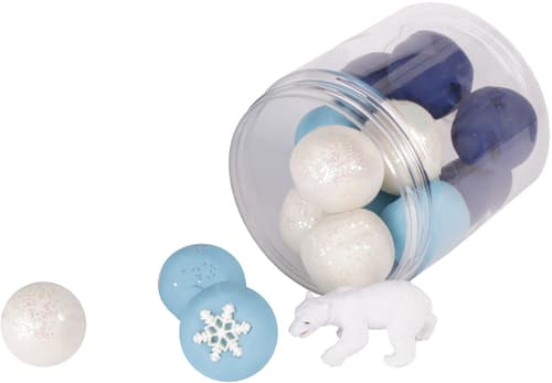 mouka, voda, olej, potravinářské stabilizátory a barviva, esenciální olej, plastové doplňky