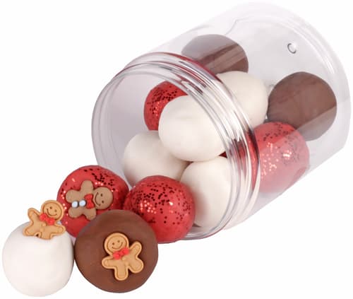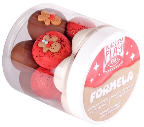 mouka, voda, olej, potravinářské stabilizátory a barviva, esenciální olej, plastové doplňky