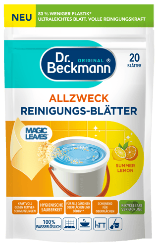 Dr. Beckmann Magic Leaves are universal cleaning sheets with a Summer Lemon scent, which are 100% water-soluble and suitable for all surfaces and floors. Thanks to the recyclable packaging, they contain 83% less plastic compared to conventional liquid cleaning products. Dr. Beckmann is a specialist in high-quality household cleaning products that address laundry and cleaning problems precisely and permanently. The brand was founded in 1982 with the launch of the Vlekkenzout product and has since expanded to more than 80 countries. Dr. Beckmann products remove more than 150 different types of stains, which is more than any other brand. Thanks to decades of research and fine-tuning, the products are renowned for their excellent effectiveness. Dr. Beckmann is also a pioneer in innovation, such as introducing the first oven cleaner without propellant gas in 1995. The brand is committed to sustainability, using 100% recycled plastic for packaging and minimizing the use of chemicals. The company has one of the largest photovoltaic installations in the region, which covers its entire electricity consumption. Dr. Beckmann has received awards such as 'Top Brand' in Germany and 'Most Innovative Household Product' in the UK. The brand's philosophy is summed up in its slogan: 'If it has to be impeccably clean'. Delta pronatura Dr. Krauss & Dr. Beckmann KG is a company with a long history, founded on May 1, 1958. Since its inception, it has focused on the production of chemical products, cosmetics, and cleaning agents, including stain removers, multi-purpose cleaners, and air fresheners. The company also offers products for industrial use, such as chemical additives for washing and cleaning. Delta pronatura owns the Dr. Theo Krauss trademark, which includes a wide range of products that meet the highest quality standards. The company is registered as a GmbH in the commercial register under number HRB 34816 and employs approximately 100-199 staff. With its long tradition, emphasis on quality, and wide range of products, Delta pronatura is a trusted partner in the field of chemical products and cleaning agents.