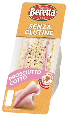 The timeless classic in gluten free version: soft gluten-free bread stuffed with quality cooked ham, with a delicate and genuine flavour. A simple and appetizing sandwich, ideal for those who don't want to give up the pleasure of tradition, even outside the home. Excellent for lunch, during a work break or for a savory snack that combines practicality and goodness guaranteed by the Beretta brand.