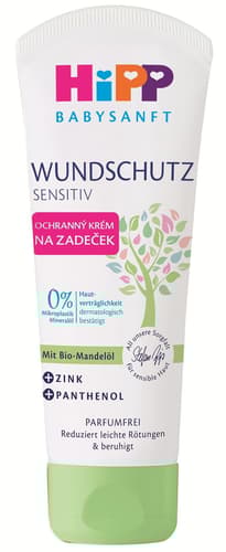 HiPP Babysanft ochranný krém pro každodenní péči o zadeček vytváří ochrannou vrstvu na citlivé pokožce miminka v oblasti plenek. Díky speciální kombinaci přírodního lanolinu, zinku, panthenolu a BIO mandlového oleje zklidňuje a regeneruje podrážděnou pokožku.