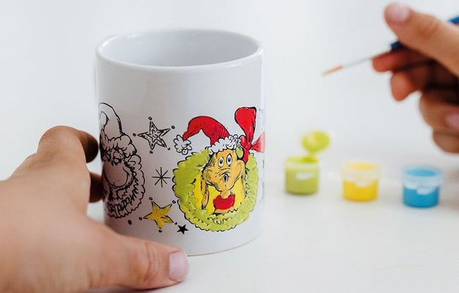 Malování hrnečku – vymalujte si hrneček s motivem Grinche podle svých představ.