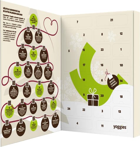 Yoggies Adventní interaktivní kalendář pro psy potěší vašeho čtyřnohého parťáka každý prosincový den. Kromě zdravých dobrot najdete v kalendáří také spoustu překvapení a tipů, jak se svým parťákem strávit adventní čas naplno.