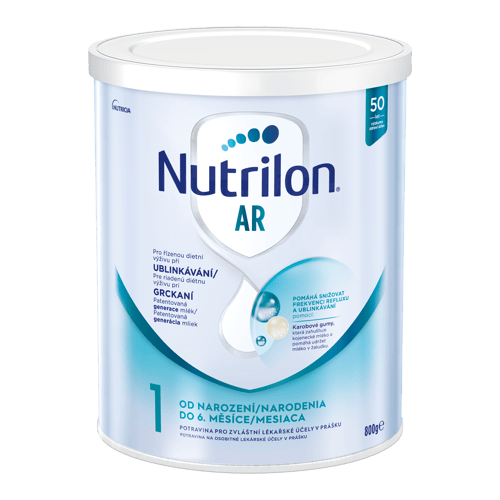 Každé miminko je jedinečné a jeho trávení se neustále vyvíjí. Pokud po krmení dochází k ublinkávání nebo se objevují problémy s trávením, mohou rodiče pociťovat obavy. Ublinkávání, regurgitace či reflux lze zmírnit správnou péčí a vhodně zvolenou výživou, která dítěti přinese úlevu. Nutrilon® AR 1 je určen pro dietní režim při výživě kojenců s častým ublinkáváním a je vhodný od narození do 6. měsíce věku dítěte. Jedná se o potravinu pro zvláštní lékařské účely v prášku. Kombinuje unikátní směs složek se speciálním výrobním procesem a účinnou látkou – přírodní karobovou gumou (karubin). Tato složka zahušťuje kojenecké mléko tím, že absorbuje vodu, a díky tomu mléko zůstává v žaludku. Produkt není vhodné používat v kombinaci s antacidy nebo jinými zahušťovadly a není určen pro předčasně narozené děti. Společnost Nutricia se více než 120 let věnuje vývoji a výrobě speciální výživy pro děti. Tým vědců a odborníků se již 50 let intenzivně zabývá porozuměním výživovým potřebám malých dětí. Díky tomuto výzkumu vzniklo i kojenecké mléko Nutrilon® AR, které je určeno k dietnímu řízení refluxu a regurgitace. Balení obsahuje 800 g.