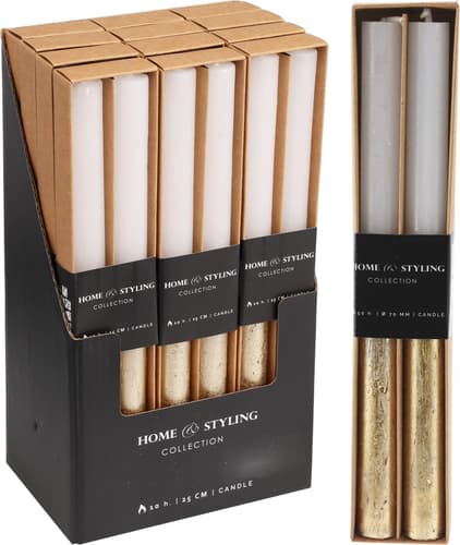 Elegantní sada dvou bílých svíček o délce 25 cm, které dokonale doplní váš sváteční i každodenní stůl. Díky svému jednoduchému designu se hodí k jakémukoli typu interiéru a snadno je sladíte s ostatní vánoční nebo stolní dekorací. Jsou ideální pro svícny, slavnostní večeře i chvíle odpočinku při teplém světle plamene.