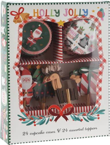 Veselá sada na pečení vánočních muffinů, která obsahuje 24 papírových košíčků a 24 ozdobných zápichů s motivy Santy, soba a dalších vánočních postaviček. Díky této sadě vytvoříte originální sváteční dezerty, které potěší nejen děti. Ideální pro pečení během adventu, vánočních večírků nebo rodinných setkání.