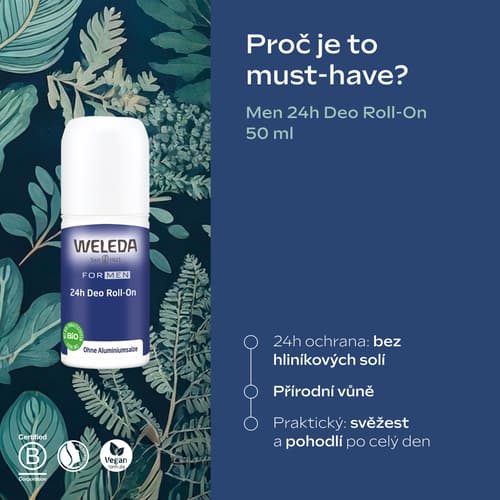 Men 24h Deo Roll-On: Voda, +Alkohol, Triethyl Citrate, Glycerin, *Parfum, Sodium Caproyl/Lauroyl Lactylate, +Extrakt Z Kořene Lékořice Hladké, +Hydrolát Z Vilínu Virginského, Arabská Guma (Z Akácie Senegalské), Xanthan Gum, Citric Acid, Phytic Acid, *Limonene, *Linalool, *Benzyl Benzoate, *Benzyl Salicylate, *Geraniol, *Citral, *Coumarin, *Farnesol + z ekologického zemědělství * z přírodních esenciálních olejů 100% Přírodní parfemace For Men Active Fresh 3in1: Voda, Coco-glucoside, Alkohol Denat., Glycerin, Disodium Cocoyl Glutamate, Xanthan Gum, *Parfum, Sodium Cocoyl Glutamate, Lactic Acid, Citric Acid, Tokoferol, Lecitin, Glyceryl Oleate, Hydrogenated Palm Glycerides Citrate, Ascorbyl Palmitate, *Limonene, *Linalool, *Geraniol, *Citral, *Coumarin * z přírodních esenciálních olejů 100% Přírodní parfemace