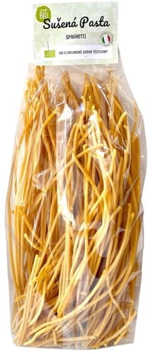 Sušené semolinové těstoviny špagety v BIO kvalitě. Těstoviny vznikají z prvotřídní semolinové mouky z oblasti Ravenny v Itálii – z tvrdé pšenice, která je základem kvalitní pasty. Těstoviny se tvarují pomocí bronzových matric, díky nimž mají hrubší povrch, který skvěle zachytí omáčku.