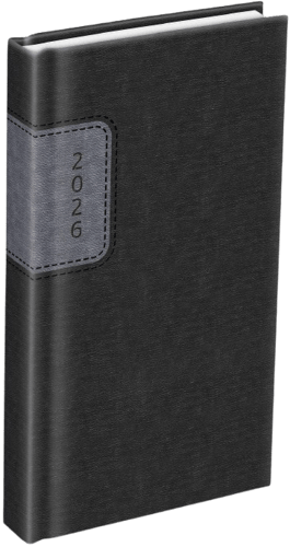 Denní diář na rok 2026 v elegantním dvoubarevném provedení šedé a tmavě šedé barvy kombinuje styl a praktičnost. Měkčený povrch z PU materiálu je příjemný na dotek, šitá vazba V8 a přehledné denní kalendárium zaručují pohodlné používání.