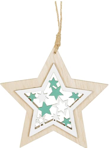 Dřevěná vánoční dekorace ve tvaru hvězdy se závěsem. Přírodní doplněk s jemným designem, který vynikne na stromku, dveřích i okně.