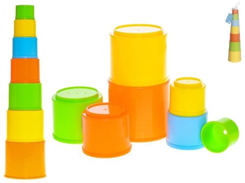 Mikro skládací pyramida obsahuje 7 barevných kalíšků v síťce. Vhodná pro děti od 6 měsíců.