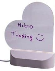 Svítící tabulka ve tvaru srdce o velikosti 16 cm je napájená přes USB a umožňuje psaní pomocí sedmi barevných fixů. Skvělý doplněk pro vzkazy i dekoraci pokoje. Vhodné pro děti od 3 let.