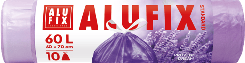 Pytle na odpadky Alufix s vůní levandule o objemu 60 l jsou vhodné nejenom do domácnosti, ale také na zahradu, do firem či prodejen. Mají praktická zatahovací ucha pro lepší odnos odpadu s možností zavázání.