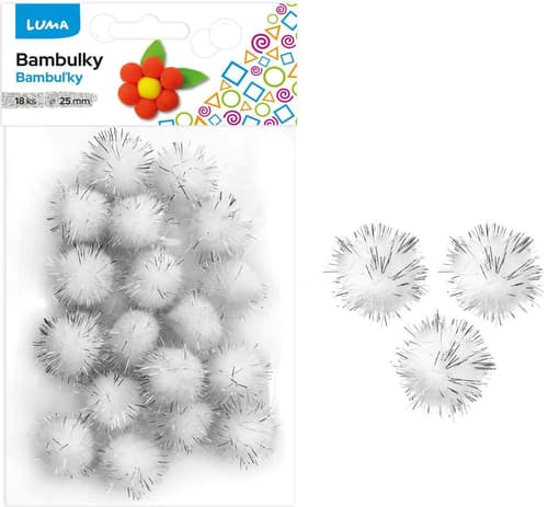 Luma Metallic white-silver pompoms 25 mm