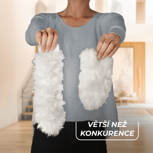 Náhradní hlavice na prachovku s extra dlouhou rukojetí pro snadné čištění i těžko dostupných míst. Měkká a nadýchaná vlákna dokonale zachytávají prach a nečistoty, takže úklid je rychlý a pohodlný. Vlákna jsou vyrobená ze 100% recyklovaného materiálu. Náplň je navíc složená z čisté netkané textilie a oleje.