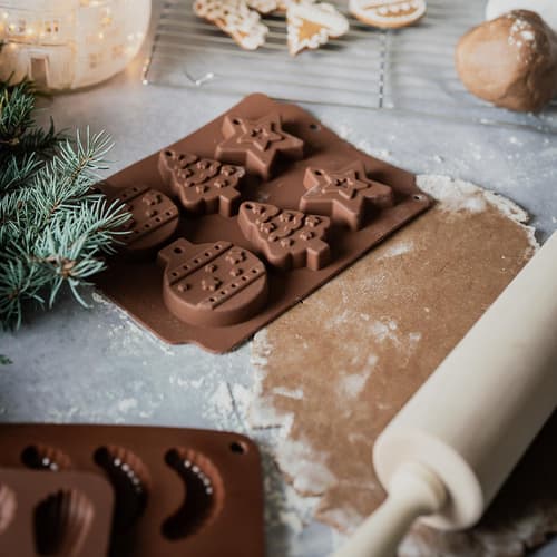 Silikonová forma vytvoří krásné vánoční dobroty ve tvaru ozdob. Můžete vytvořit nepečené i čokoládové zákusky, stejně dobře v ní ale tyto tvary můžete upéci z těsta.