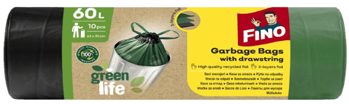 FINO LD Bags Green Life drawstring 60L, 10pcs, 30 μm