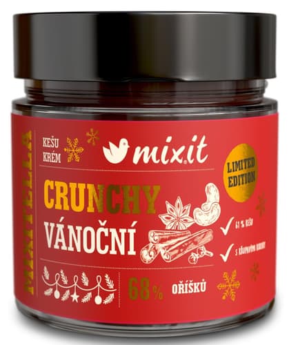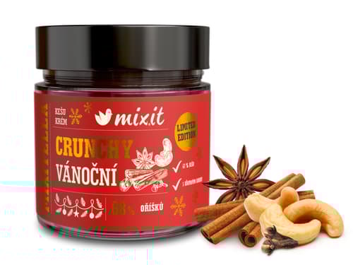 Mixitella – limitovaná vánoční edice. Krém z jemně mletých kešu a lískových oříšků doplněný kokosovým cukrem, přírodní vanilkou a směsí vánočního koření – skořice, hřebíček a badyán. Chuť i vůně připomínají čerstvě upečené perníčky. Pro zajímavější texturu obsahuje křupavé kousky kataifi těsta a je zjemněn přepuštěným máslem (ghí).