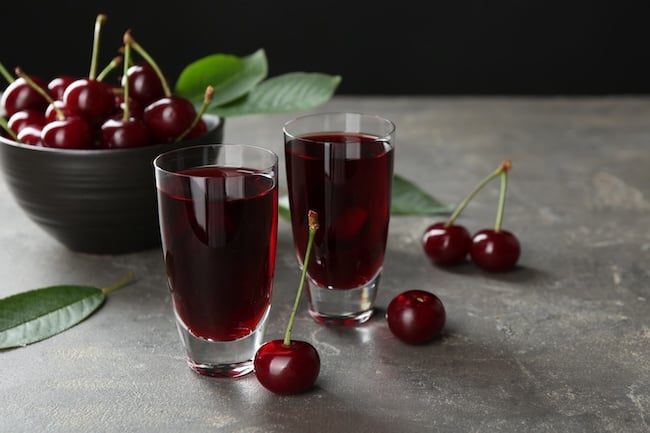 Višňová šťáva 31%, cukr, voda, líh, višňové aroma, aromata, skořicový a badyánový macerát.