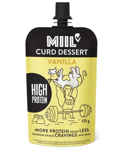 Miil High Protein tvarohová vanilková kapsička je nabitá bílkovinami a je z více než poloviny připravena z tvarohu (55 %), který se postará o krémovou chuť i poctivou porci proteinu. Navíc je vyrobena zcela bez přidaného cukru a obsahuje jen přirozeně se vyskytující cukry.
