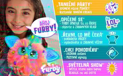 Furby zvládne více než 600 frází, písniček a vtipů, mluví česky i furbijsky a reaguje na objetí, hlazení nebo krmení přívěškem ve tvaru pizzy. Děti si ho mohou zdobit připínacími korálky a česat mu vlasy, což rozvíjí jejich tvořivost i fantazii.