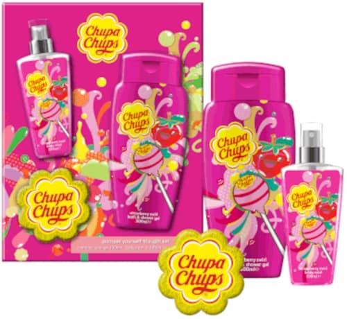 Hravá dárková sada Chupa Chups přináší do koupelny sladké vůně inspirované ikonickými lízátky. Obsahuje sprchový gel pro jemně provoněnou pokožku, tělovou mlhu pro osvěžení během dne a koupelovou houbičku, která zpříjemní každé sprchování. Vše v hravém designu, který potěší milovníky barev, vůní a sladkostí.