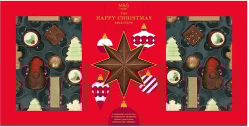 Vánoční kolekce Happy Christmas Selection nabízí dekadentní výběr plněných pralinek z mléčné, hořké a bílé čokolády, z nichž každá je zdobená svátečními motivy. Tato signature kolekce zahrnující jemné lanýže a karamelky je vytvořena z prvotřídní belgické a italské čokolády.