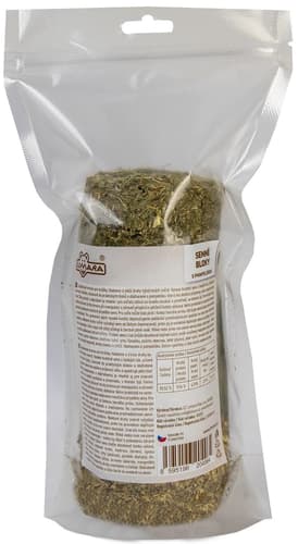 Senné bloky s pampeliškou jsou moderní a praktická forma sena, která potěší každého králíka, morče i další býložravé mazlíčky. Vysoká kvalita sena z českých luk je slisovaná do kompaktních bloků, které usnadní dávkování a pomáhají snižovat ztráty krmiva při manipulaci i v ubikaci. Bloky jsou navíc obohaceny o pampelišku, která dodává příjemnou vůni a přirozeně zpestřuje jídelníček vašeho mazlíčka. Díky prosetí a odprášení je seno vhodné i pro zvířata citlivá na kvalitu ovzduší.