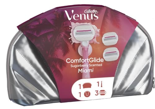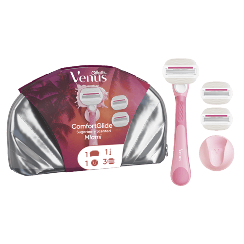 Gillette Venus ComfortGlide Sugarberry Scented Miami Women’s Razor, 3 Refills + Shower Hook + Bag