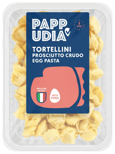 Tortellini filled with prosciutto crudo from the brand Pappudia are an ideal choice for quickly preparing a delicious meal. Delicate pasta filled with high-quality ham.