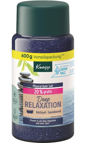 Koupelová sůl Kneipp Deep Relaxation pomůže zklidnit vaše vnitřní napětí a zmírnit stres. Po tmavě modré koupeli s uvolňující vůní krásně propadnete do říše snů. Využívá totiž relaxačních vlastností santalového dřeva a esenciálního oleje z pačuli. Díky minerálům z mořské soli a pečujícímu mandlovému oleji vás po koupeli čeká intenzivně hydratovaná a příjemně hebká pokožka celého těla..