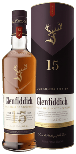 Glenfiddich 15 years is a Scottish single malt whisky known for its balanced flavor. It is characterized by notes of dark chocolate, raisins, and caramel. The production process is inspired by the Solera method, which ensures consistency of flavor.