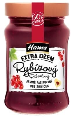 Červený rybíz (50 %), cukr, regulátor kyselosti: kyselina citronová, želírující látka: pektin.
