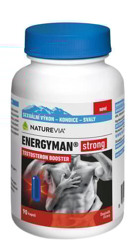 Doplněk stravy. NatureVia Energyman strong je doplněk stravy pro muže s obsahem kotvičníku (Tribulus), L-argininu, extraktu z ústřic a zinku. Velmi vhodný doplněk i pro aktivní sportovce. Tribulus terrestris (Kotvičník zemní): podporuje správnou funkci pohlavních orgánů a hormonální aktivitu, přispívá k normální funkci močové soustavy, dodává tělu energii a příznivě ovlivňuje tělový a svalový tonus. L-arginin je aminokyselina oblíbená mezi muži, kteří dbají o aktivní životní styl. Extrakt z ústřic obsahuje vysoké množství biologicky aktivních látek a zinku pro podporu plodnosti, reprodukci a udržení normální hladiny testosteronu v krvi. Doporučuje se i v období mužské andropauzy k podpoře vitality, dobré nálady a kondice svalů. Nepřekračujte doporučené denní dávkování. Uchovávejte mimo dosah dětí. Doplňky stravy nejsou náhradou pestré a vyvážené stravy. Balení obsahuje 90 kapslí. Hmotnost obsahu: 57 g.