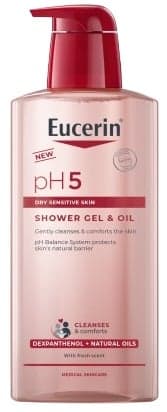 Eucerin® pH5 Sprchový gel & olej obsahuje regenerační dexpanthenol a přírodní oleje, které pokožku jemně čistí a posilují její přirozenou ochrannou bariéru. Složení je zcela bez mýdla, takže pokožku nevysušuje ani při každodenním používání. Pokožka je po sprchování vláčná, zdravě vypadající a hebká. pH Balance System a pH5 citrátový pufr se stará o obnovu a podporu přirozeného mírně kyselého pH pokožky. Díky tomu posiluje odolnost vůči podráždění a vytváří optimální prostředí, které prospívá kožní flóře. Při pravidelném používání mizí nepříjemné pocity jako zarudnutí, pnutí, suchost a šupinatění pokožky. Olejový sprchový gel vytvoří během mytí příjemnou pěnovou konzistenci a po opláchnutí nezanechává na pokožce mastný film. Je ideální na mytí celého těla i obličeje. Jemné složení je vhodné pro použití u kojenců, dětí i osob s extrémně citlivou pokožkou. Vyzkoušejte EUCERIN pH5 Sprchový gel & olej a dopřejte své pokožce tu nejlepší péči. Balení obsahuje 400 ml.