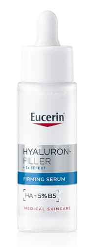 Eucerin HYALURON-FILLER+3xEFFECT vyplňující sérum s obsahem 5% provitamínu B5 je navrženo tak, aby intenzivně zpevňovalo pleť, vyplňovalo vrásky a posilovalo kožní bariéru. Díky těmto vysoce účinným složkám zlepšuje odolnost pleti vůči vnějším agresivním vlivům. Sérum má hedvábně lehkou texturu, která se rychle vstřebává a nezatěžuje pleť. Je vhodné pro všechny typy pleti, včetně citlivé. Obsahuje nízkomolekulární kyselinu hyaluronovou, která zvyšuje pružnost pleti. Sérum díky ní také vyplňuje vrásky. Pleť navíc hloubkově hydratuje. Provitamín b5 (panthenol) podporuje přirozenou obnovu pleti a zklidňuje podráždění. Panthenol pomáhá zpevnit kožní bariéru, čímž zvyšuje schopnost pleti zadržovat vlhkost. Zároveň napomáhá regeneraci buněk, díky čemuž je pleť klidnější, jemnější a lépe chráněná před vnějšími vlivy. Glycerin udržuje optimální úroveň hydratace po celý den. Zabraňuje vysychání pleti. Ectoin zase zvyšuje odolnost pleti vůči environmentálním stresorům. Má zklidňující účinky. Balení obsahuje 30 ml.