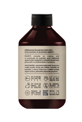Massage into wet fur from roots to tips. Rinse thoroughly. For better results, use Furnatura Rose Conditioner. The shampoo can be diluted with water for easier application.