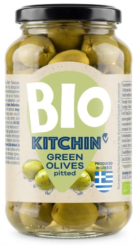 Kitchin BIO green olives in brine with a mild and slightly spicy taste. Suitable for preparing salads, tapas, or as a snack. rohlik. cz/srst/image/grocery/request/8731/1769164946898866003. jpeg" alt="Product image">
