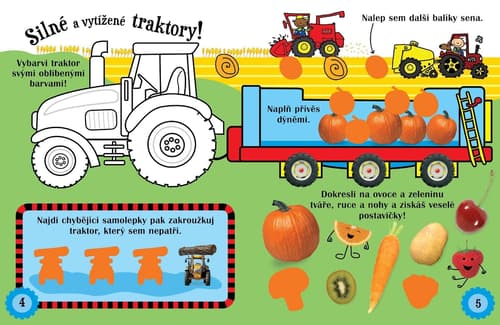 Milovníci traktorů a náklaďáků si s touto knihou užijí skvělou zábavu při spoustě činností spojených s vybarvováním a nalepováním 1000 samolepek.
