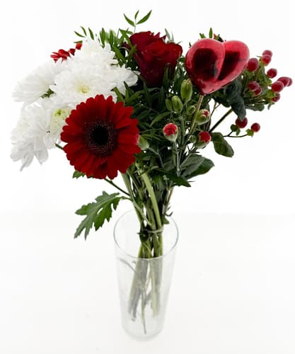 Valentine's bouquet in red and white is an elegant combination of red and white flowers, perfect for celebrating the holiday of love. This bouquet brings harmony of colors and is suitable as a romantic gift.