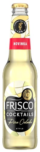 Frisco Piña Colada is a flavored fermented malt beverage with pineapple and coconut flavor. It contains 4.5% alcohol and is gluten-free. The new returnable bottle is practical and environmentally friendly.