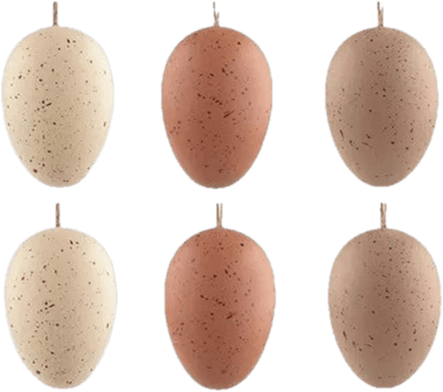 6 pcsEaster plastic eggs by MFP are speckled and dark brown. They are 6 cm in size and designed for hanging. The package contains 6 pieces.