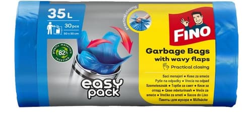 FINO HD Easy Pack bags are 35 l trash bags in a 30-pack. They are made of HDPE with a thickness of approximately 15 μm for everyday household waste.